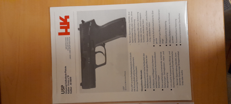 Sie bieten auf das Original Verkaufsprospekt von Heckler&Koch USP Pistole.