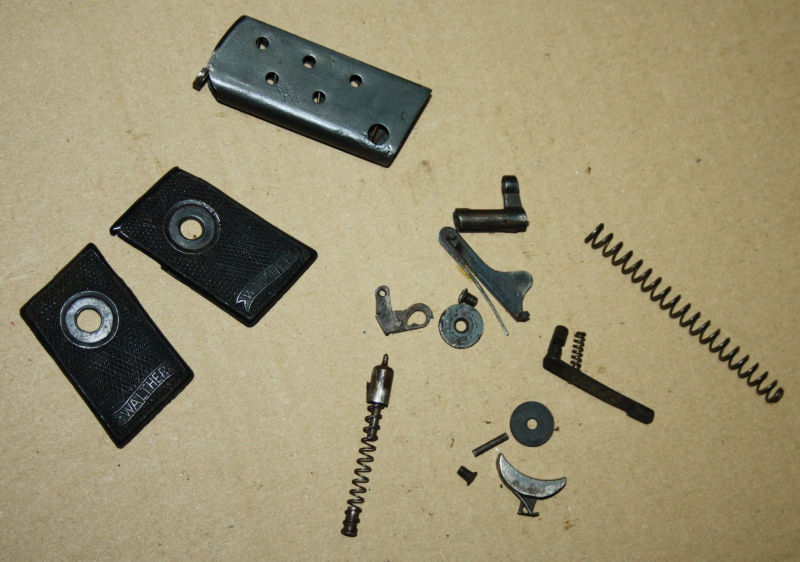 Sie kaufen die abgebildeten Ersatzteile für Walther Modell 9 Pistolen im Kal. 6,35mm Br. Voll verwendungsfähig.