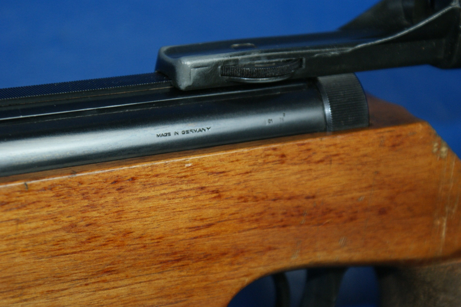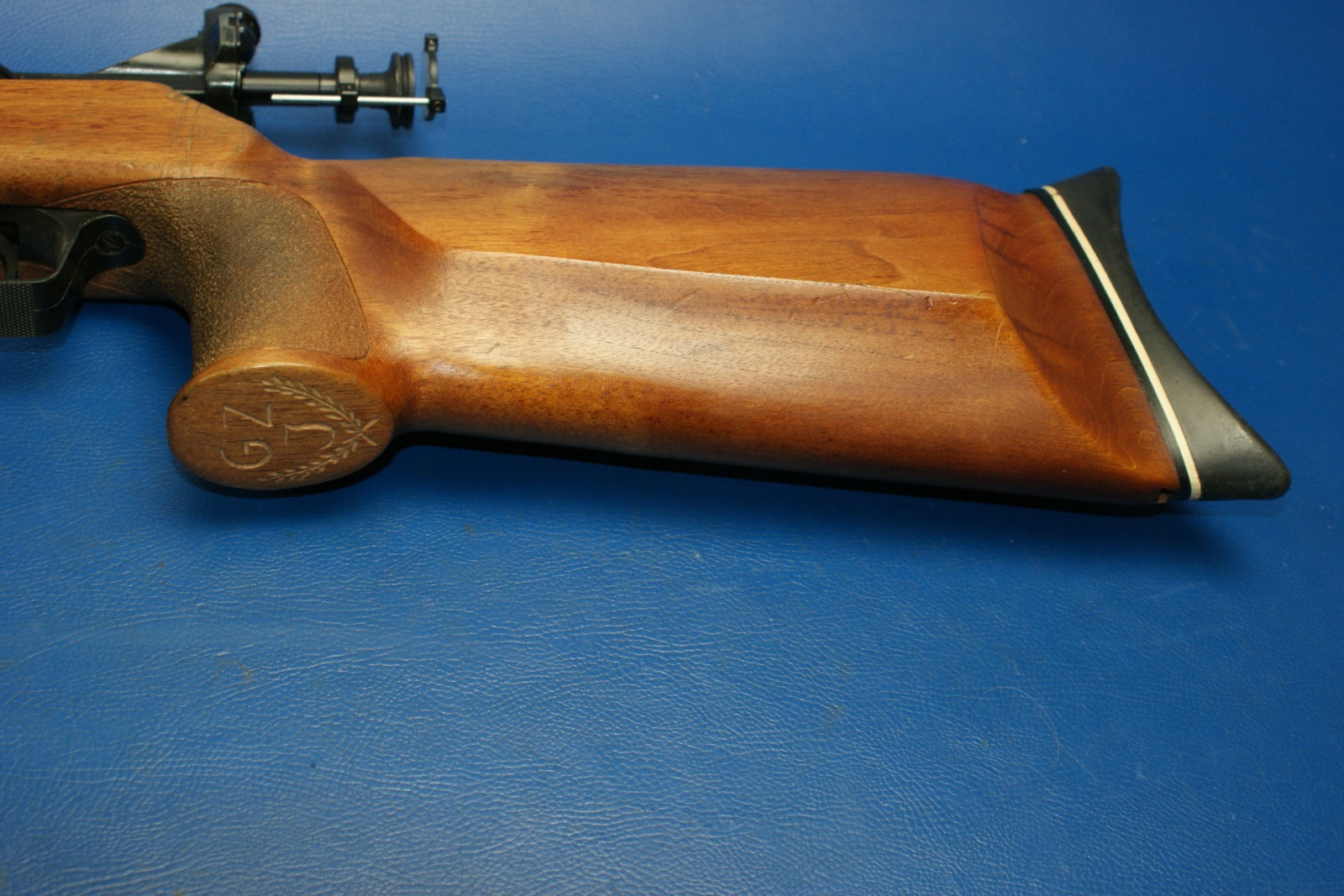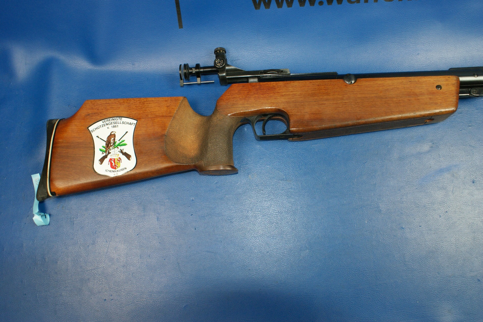 Wahrscheinlich mal eine Vereinswaffe gewesen. Rechtsgewehr. Lager- und Gebrauchsspuren.