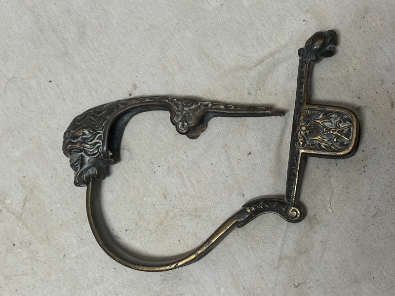 Sehr fein detaillierter Griff aus Messing. Gestempelt Ges. Geschützt.