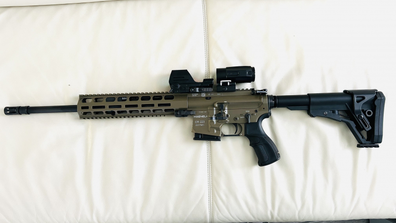 Ich verlaufe wegen Hobbyaufgabe meine absolut neuwertige halbautomatische Büchse HAENEL CR223 Sondermodell in olivgrün, mit 16,65" Lauf, sowie mit einem langen Handschutz und einem Matchabzug, der 1.500 g Abzugsgewicht besitzt und ein absolut präzises Schießen optimal unterstützt.