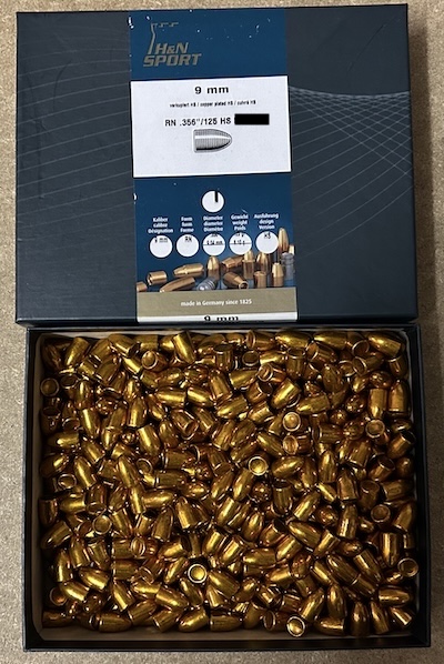 Verkaufe eine offene Packung mit 470 Stück H&N Geschosse 9mm - 125grain - RN - Diameter: .356.