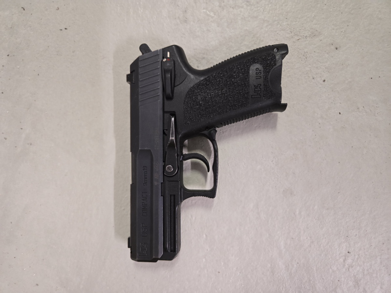 Zum Verkauf steht eine Heckler & Koch USP Compact in 9mm Luger, ein Modell, das sich über die Jahre als robustes Arbeitsgerät bewährt hat.