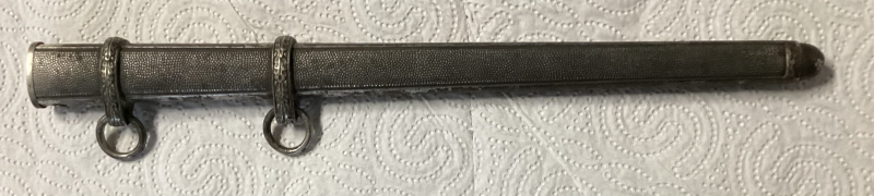 Eine schöne Metallscheide für den Heeresdolch. Dem Alter entsprechend in gutem Zustand, keine Beulen. Die Scheide ist magnetisch, die Bänder sitzen fest und die Trageringe sind verschlossen.