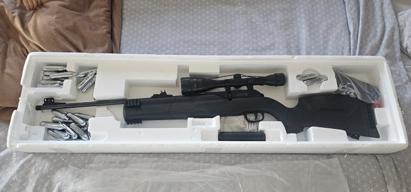 Zu verkaufen steht ein Umarex Mod.850 M2 im Cal. 4,5mm / .177 in der Ausführung Target Kit. Das bedeutet neben dem Gewehr selber sind Walther ZF 6 x 42, Schalldämpfer K3 Neo, Adapter für zwei 12-Gramm-CO₂-Kapseln, 500 Diabolos inclusive. Die Waffe ist super prezise und wurde kaum benutzt. Die Waffe befindet sich im besten Zustand. Diese Waffe erreicht bis zu 7,5 Joule und 167 m/s. Viel Spaß beo der Auktion.