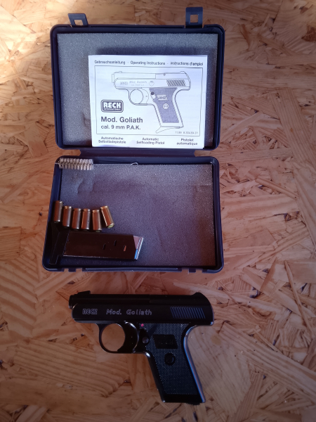 Verkaufe eine schöne gut erhaltene Schreckschusspistole, eine Reck Goliath 9 mm mit 4 Schuss Magazin,