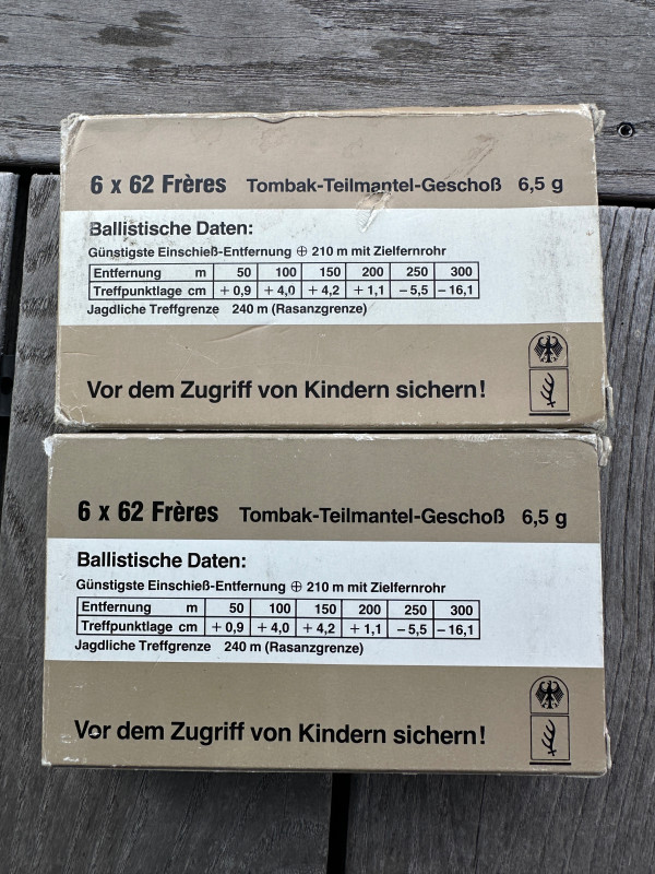 62 Patronen Kal. 6x62 FRERES 25x von Dorfner Wien und 37x von MEN
