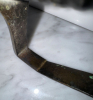 Guter, gebrauchter Zustand. Die Klinge ist schön dunkel patiniert und hat leichte Scharten. Der Bügel am Griff hat einen Riss, siehe Fotos. Die Lederscheide ist original dazugehörig, Ort-und Mundblech sind lose und können abgenommen werden. Da die Lederscheide über sehr lange Zeit in trockener Umgebung lagerte, ist sie etwas geschrumpft und der Säbel lässt sich nicht mehr komplett einführen. Das alles sind normale Gebrauchsspuren eines über 250 Jahre alten Säbels und keine Mängel. Ich habe die Klinge lediglich mit Ballistol eingeölt und die Lederscheide mit Lederfett behandelt, um ein Austrocknen zu verhindern. Es wurde nichts daran herumgepfuscht, der Säbel und die Lederscheide sind im Fundzustand. Klinge ohne Stempel, was für die Herstellungszeit typisch ist.