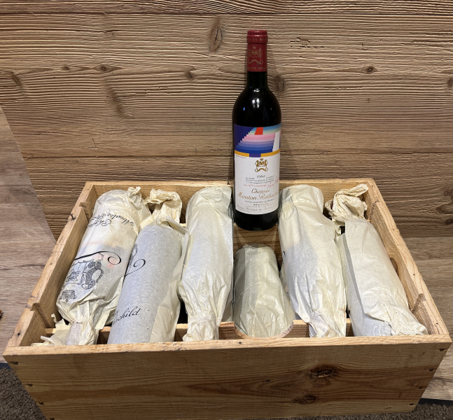 insgesamt stehen 12 Flaschen aus einer originalen Mouton Rothschild 1984 Kiste zur Verfügung