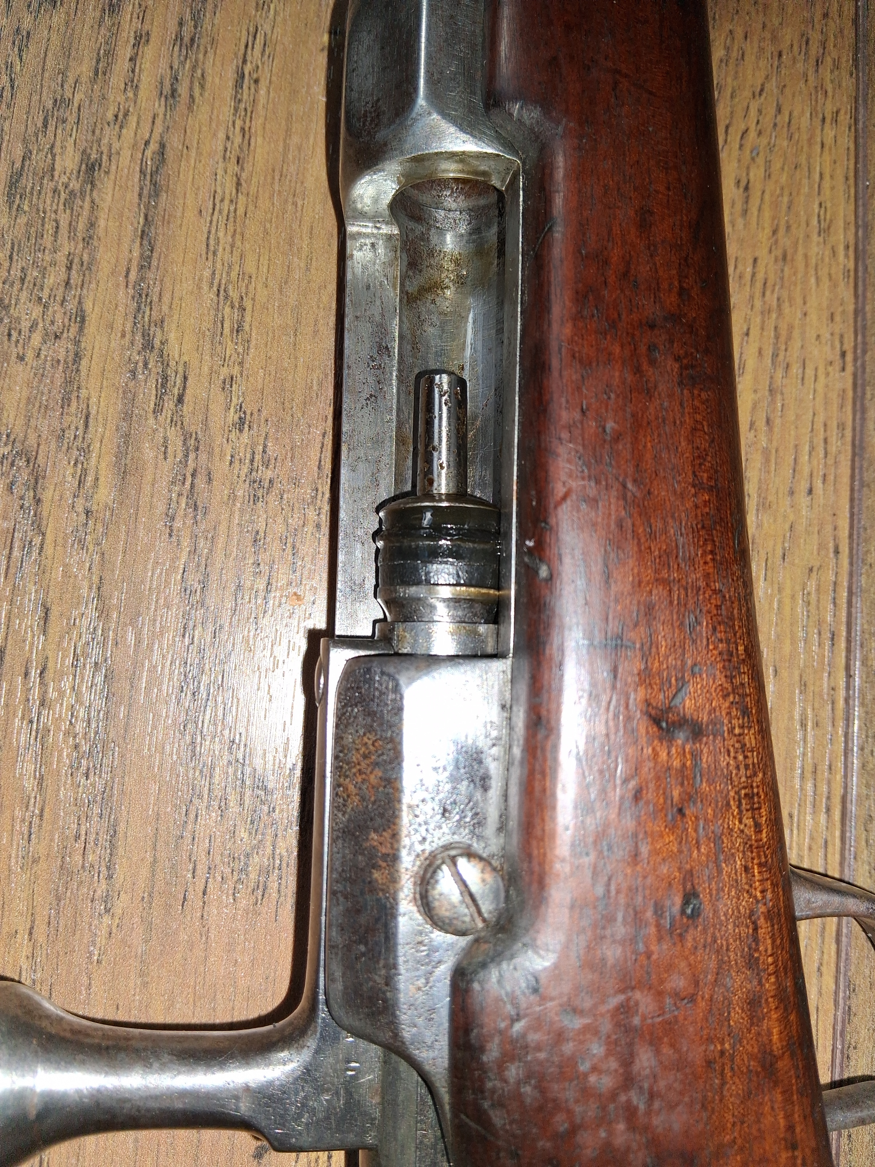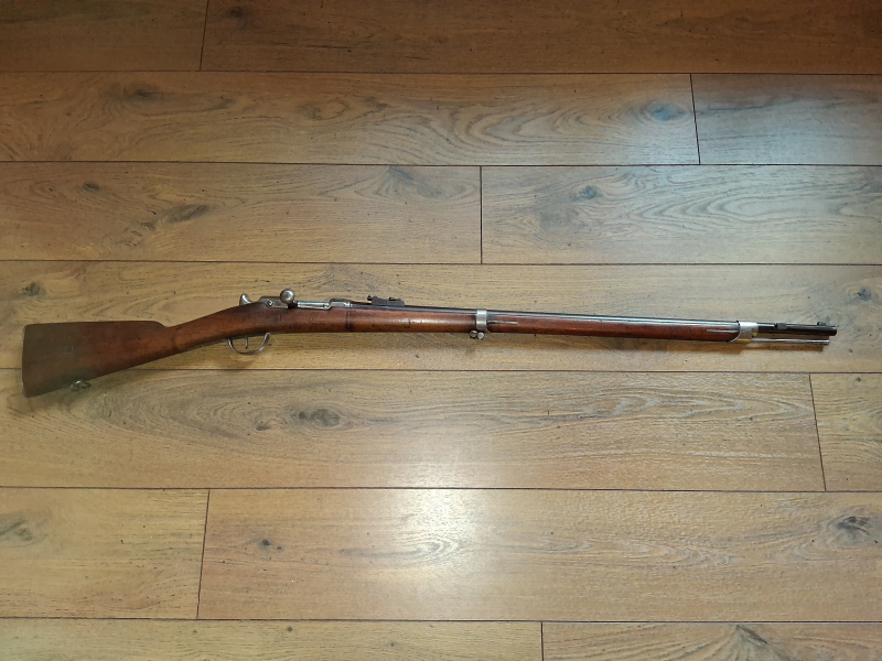 Hiermit biete ich ein schönes Chassepotgewehr aus dem Nachlass eines Schützenfreundes an. Der Zustand ist meiner Meinung nach gut und die Waffe wurde tatsächlich auch zum sportlichen Schiessen verwendet. Nadel und Dichtung sind nicht mehr Original, auch ist System und Schloß nicht nummerngleich. Der Lauf ist nicht mehr neuwertig, die Felder und Züge allerdings klar zu sehen. Ich denke der Zustand ist auf dem Foto in etwa zu erkennen, mehr gibt die Kamera nicht her.