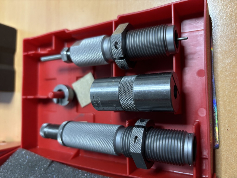 Ich biete hier wegen Hobbyaufgabe einen neuwertigen Matrizensatz Hornady 8x57IS Custom Gradean. Der Satz besteht aus einer Voll-Kalibriermatrize, Geschosssetzmatrize, Der Satz ist nicht die preisgünstige American Version mit festem Setzkopf, sondern der Custom Grade Satz mit selbst zentrierendem, schwimmend gelagertem Setzkopf. Alle Gewinde neuwertig, nichts vernudelt – siehe Fotos. Zusätzlich eine Patronen Prüflehre. Damit prüft man auf Mini- und Maximumlänge und korrekter Kalibrierung der Hülse oder der fertigen Patrone. Hülsenhalter Hornady und einmal wiedergeladene Hülsen von RWS.