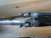 Hahnquerflinte Jung und Sohn, Suhl, Kaliber 16/65. Gültiger deutscher Beschuß, Gesamtlänge 121 cm, Lauflänge 77 cm, Schaft / Abzug 35 / 37,5 cm. Verschluß dicht, kein Spiel, teilweise leichte Flugrostspuren an den Metallteilen, Läufe innen teilweise narbig.