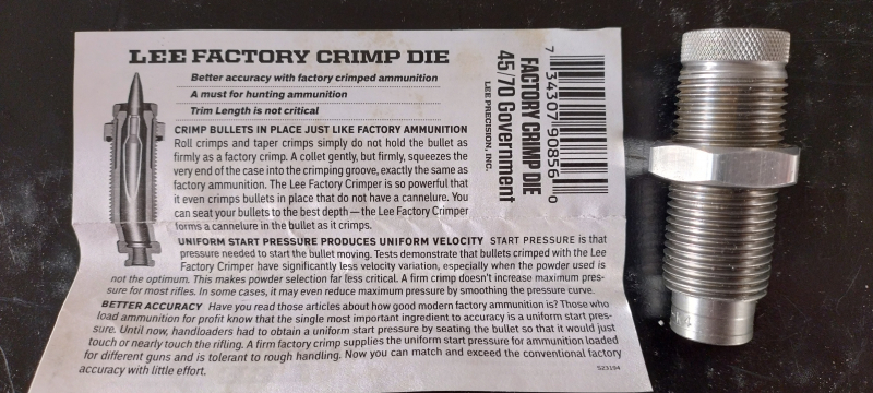 Lee Factory Crimp Matrize für das Kaliber .45-70. Dient tatsächlich zur Steigerung der Präzision .