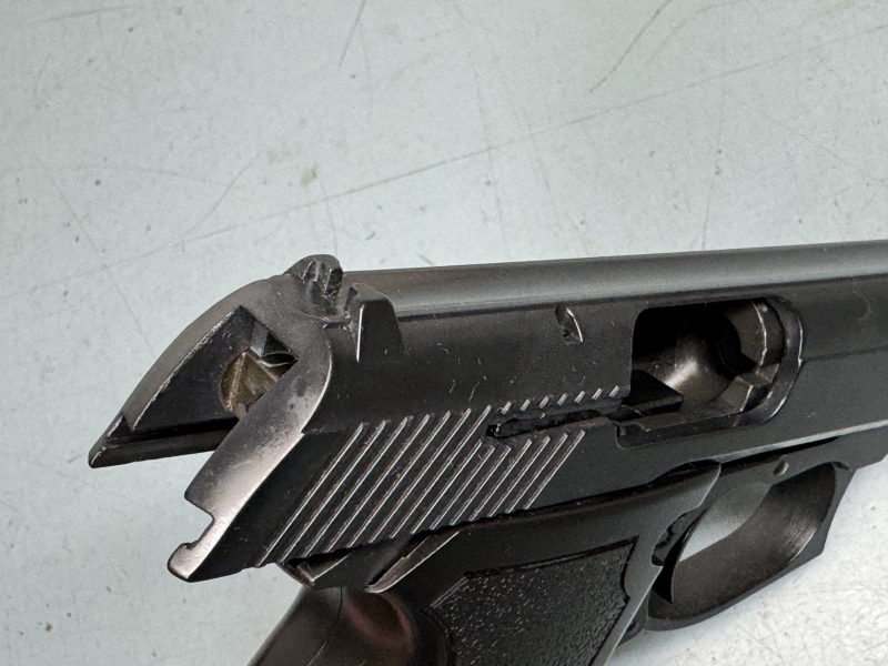 Beschuss in Ulm KI = 1989. Der Zustand ist recht ordentlich, ich habe lediglich drei Magazine damit verschossen, es sind Flecken am Schlitten zu sehen. Ich habe die Pistole hier vor einigen Jahren bei eGun erstanden, sie wurde von mir fachgerecht gereinigt und liegt seitdem unbenutzt ihrem Kurzwaffenkoffer.