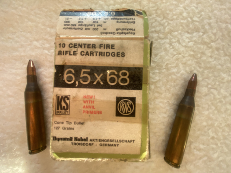 Verkaufe 1 Schachtel RWS Munition im Kaliber 6,5 x 68 mit Kegelspitz Geschoß.