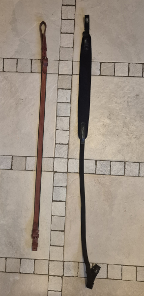 1 mal Niggeloh Gewehrriemen schwarz, 1 mal Leder Gewehrriemen mit Gummi Unterlage