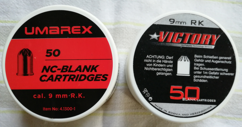 Aus Nachlass biete ich 2 Packungen mit jeweils 50 St. 9mm Knallpatronen an.