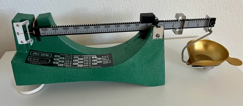 Die Pulverwaage ist mit einem Hauptgewicht und mit zwei Feingewichten ausgestattet.