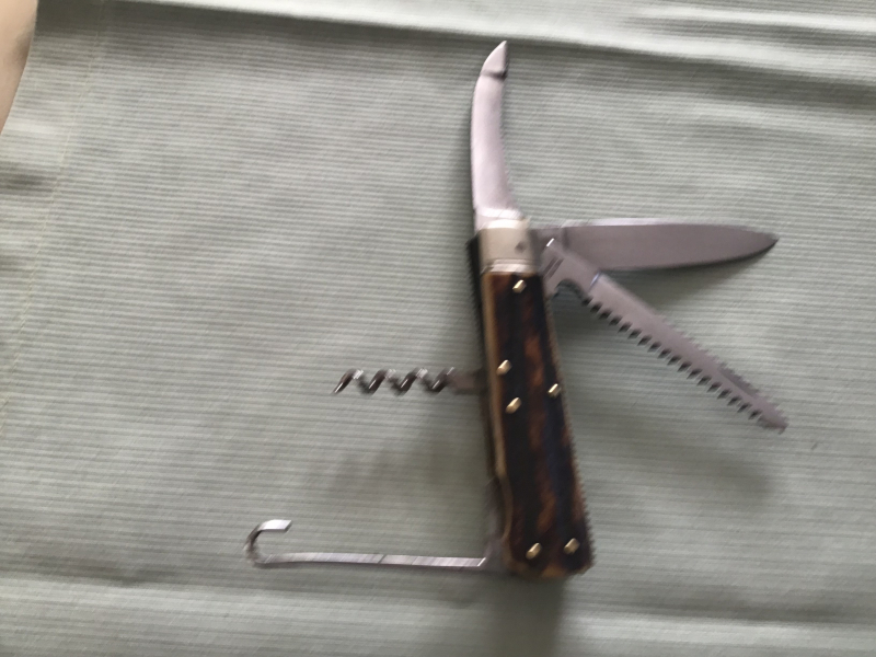 Jagdtaschenmesser „Waidmannsheil“ 5 teilig, Klinge, Aufbruchklinge, Säge, Gesc. Haken,, Korkenzieher