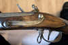 Moin. Verkauft wird, im Auftrag, der Nachlaß eines verstorbenen Schützenkollegen, hier ein, wie es ausschaut, originales Vorderlader Steinschloßgewehr. Material sieht aus wie Damast; aber ich bin da kein Kenner. Das Schloß funzt einwandfrei und funkt. Der Innendurchmesser des Laufs beträgt imposante 18,3 mm. Könnte vielleicht auch eine Schrotflinte sein. Es sind keinerlei Beschriftungen zu erkennen.