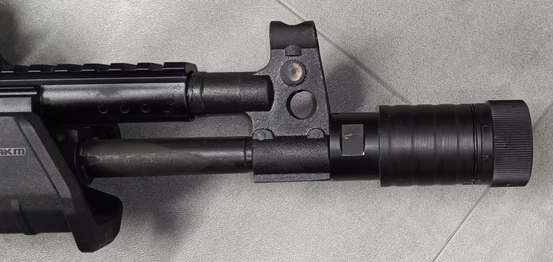 Bulgarischer "Krinkov"-Mündungsfeuerdämpfer, initial entwickelt für kurzläufige AK-Varianten. Geeignet sowohl für Kaliber 5,45mm, als auch 7,62mm. Aufgrund seiner vierteiligen Konstruktion mit innenliegendem "Trichtereinsatz" wird ein gewisser Staudruck im Gassystem aufrechterhalten, nachdem das Geschoss den Lauf verlassen hat. Bei den bei kurzen AK-Läufen geringen Gasstandzeiten trägt dies maßgeblich zur Verbesserung der Zuverlässigkeit bei. Bei einer kurzläufigen Cugir war es mir nur mittels dieses Mündungsfeuerdämpfers möglich, eine absolut zuverlässige Selbstladefunktion mit positivem Hülsenauswurf einzustellen. Gewinde 24x1,5mm (AK74 / AK100-Baureihe), lässt sich mittels Gewindeadapter aber auch unproblematisch an Waffen mit 14x1mm Linksgewinde (AK47) montieren. Das geniale Konzept ermöglicht eine einfache Zerlegung zur Reinigung. Gerade bei kurzen Läufen ausgezeichnete Mündungsfeuerunterdrückung. Die üblicherweise immense Schallentwicklung an der Mündung wird vorwiegend in Richtung des Zieles vom Schützen weg "umgelenkt", das Schießerlebnis für den Schützen und seine Standnachbarn wird deutlich angenehmer. Leider generell nur sehr schwierig zu beschaffen, es wurden keine nennenswerten Stückzahlen dieses Dämpfers produziert. Hatte ihn einige Jahre im Einsatz, der Zustand ist sehr gut mit nur sehr geringen Gebrauchsspuren.