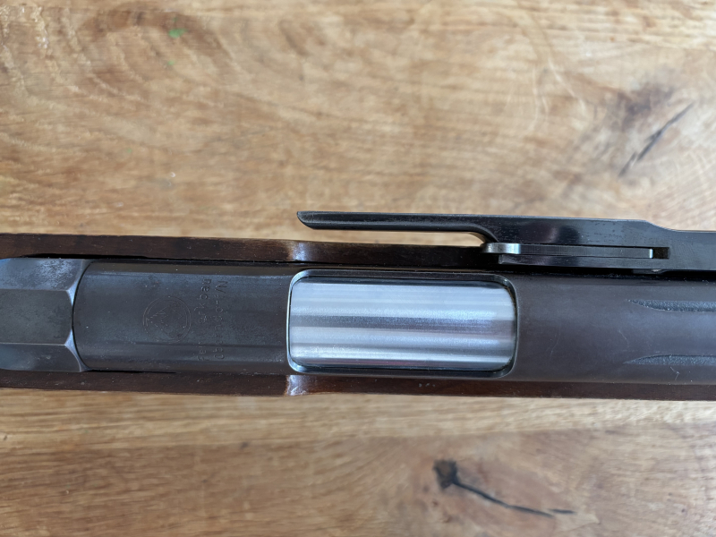 Zum Verkauf steht ein Feinwerkbau 300S Match-Luftgewehr (Kal. 4,5 mm / .177 Diabolo) aus Privathaushalt (Nachlass). Das Gewehr wurde nicht als Vereinsgewehr verwendet und wurde pfleglich behandelt. Seriennummer: 243862, F im Fünfeck vorhanden, mit UIT-Schiene am Vorderschaft (zum Anbringen von Handstopps oder Riemen). Diopter in einem guten Zustand. Das Gewehr funktioniert tadellos und hat Gebrauchsspuren. Die originale Brünierung ist noch gut. Technisch Zustand: Funktioniert und schießt gut. Dichtungen scheinbar in Ordnung, aber unbekannt, wann sie zuletzt gewechselt wurden. Ein interessanter Posten für Sammler, Liebhaberwerte oder Kenner, die Freude am Entdecken haben. Das Modell 300S zeichnet sich durch seine stabile Bauart aus und ist eigentlich unverwüstlich! Ein ehrliches Stück, zum guten Preis. Es handelt sich um einen Privatverkauf.