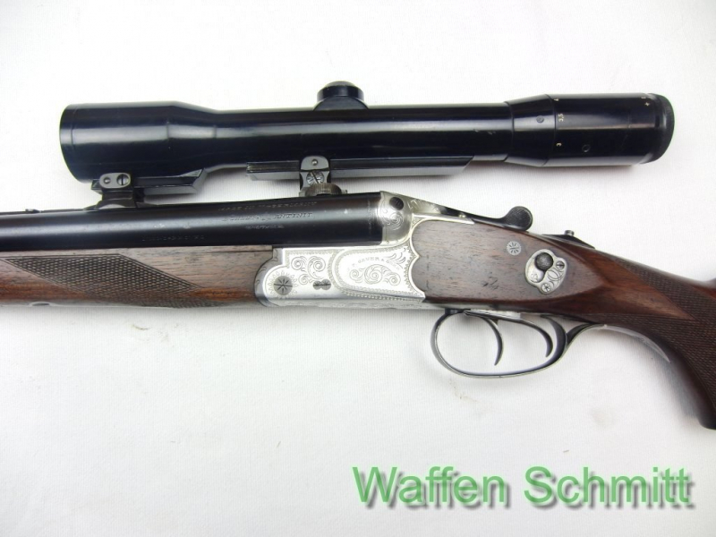 Sie bieten auf einen Leichtmetall-Drilling Sauer&Sohn im Kaliber 16/70-7x65r montiert mit Hensoldt Zielfernrohr 1,5-6x35 montiert mit Suhler Einhakmontage. 65cm Lauflänge mit Klapp-Visierung (Läufe von innen ohne Mängel), Verschlußkasten aus Leichtmetall, Greener-Verschluß (absolut dicht), Auszieher, Doppelabzug, vorderer Abzug mit Rückstecher, Umschaltung auf dem Kolbenhals, Nußbaumholzschaft mit deutscher Backe, Riemenbügel, Schaftlänge 36cm, Gesamtlänge 107cm. Leichte Gebrauchsspuren auf dem Drilling, ansonsten guter Zustand!!!