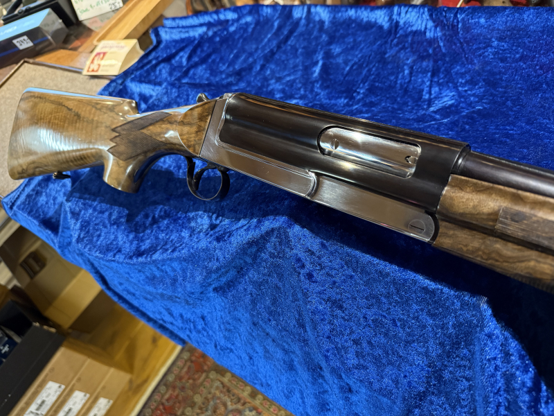 Seltene, fast ungeschossene, daher noch neuwertige SL-Flinte von Cosmi/ Ancona Italien Kal 12/70