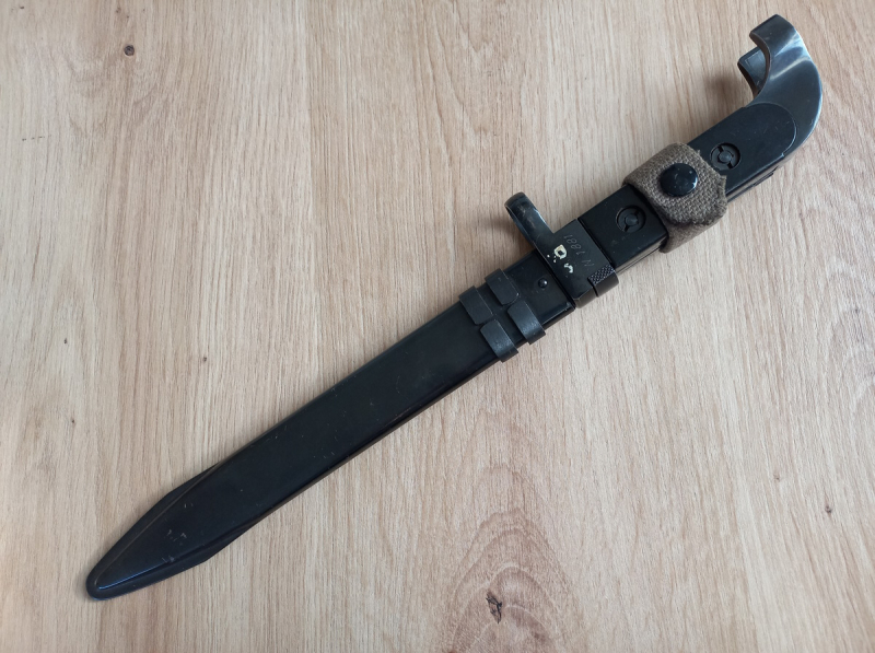 Verkaufe originales sehr gut erhaltenes AK 47 NVA Seitengewehr, mit Scheide und Koppelschuh Nummer N1881. Für das Alter sehr guter Zustand, Klinge nicht beschliffen, kein Rost, Länge 32cm