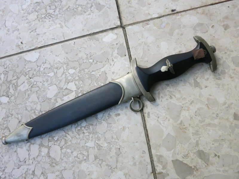 Der Dolch ist vermutlich mal schlecht geliegen, da die Klinge leichte Flugrostansätze hat und der Dolch angelaufen ist.