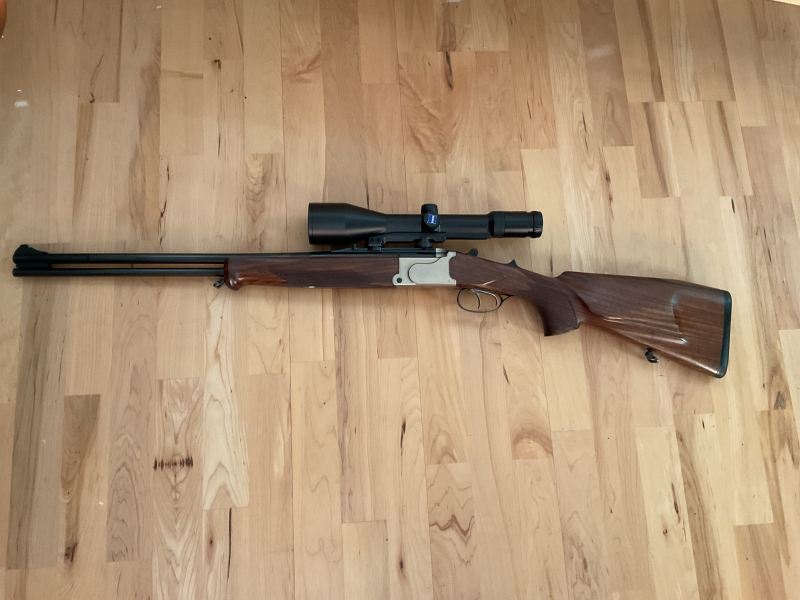 Lauflänge 60 im sehr guten Zustand leichte Gebrauchsspuren natürlich Thermostabil Verstellung unter Vorderschaft.Auf der Orginal Schwenkmontage ist ein Top Zeiss Glas 3-12 Abs 4 mit Nachtleuchtpunkt montiert Top Zustand.Stahlbasküle mit Randstich Holzklasse 2.Waffe ist neu eingeschossen Loch an Loch beide Läufe.