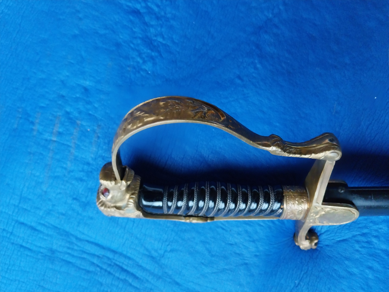Biete wegen Sammlungsauflösung einen sehr schön erhaltenen Löwenkopfsäbel Kaiserzeit an. Ist eines meiner Top Löwenkopfsäbel aus der Zeit mit schönen roten Glasaugen. Die Klinge ist sehr schön erhalten, der Hersteller mit Logo befindet sich unter dem Parierlappen so wie es sein soll. Das Gefäße zeigt leichte tragespuren ist aber noch sehr gut erhalten auch Vergoldung passt.Die Griffwicklung ist top.Das Griffsrück hat keine Risse und auch die Scheide ist auch noch original erhalten und zeigt nur leichten Rostansatz und hier und da mal kleine Kratzer.. Diese Erhaltung findet man nicht mehr so oft. Kommt auf den Bildern leider nicht so gut rüber. Bezahlung pp Freunde oder Überweisung innerhalb von 2 Werktagen, versandt erfolgt zeitnah.