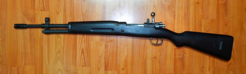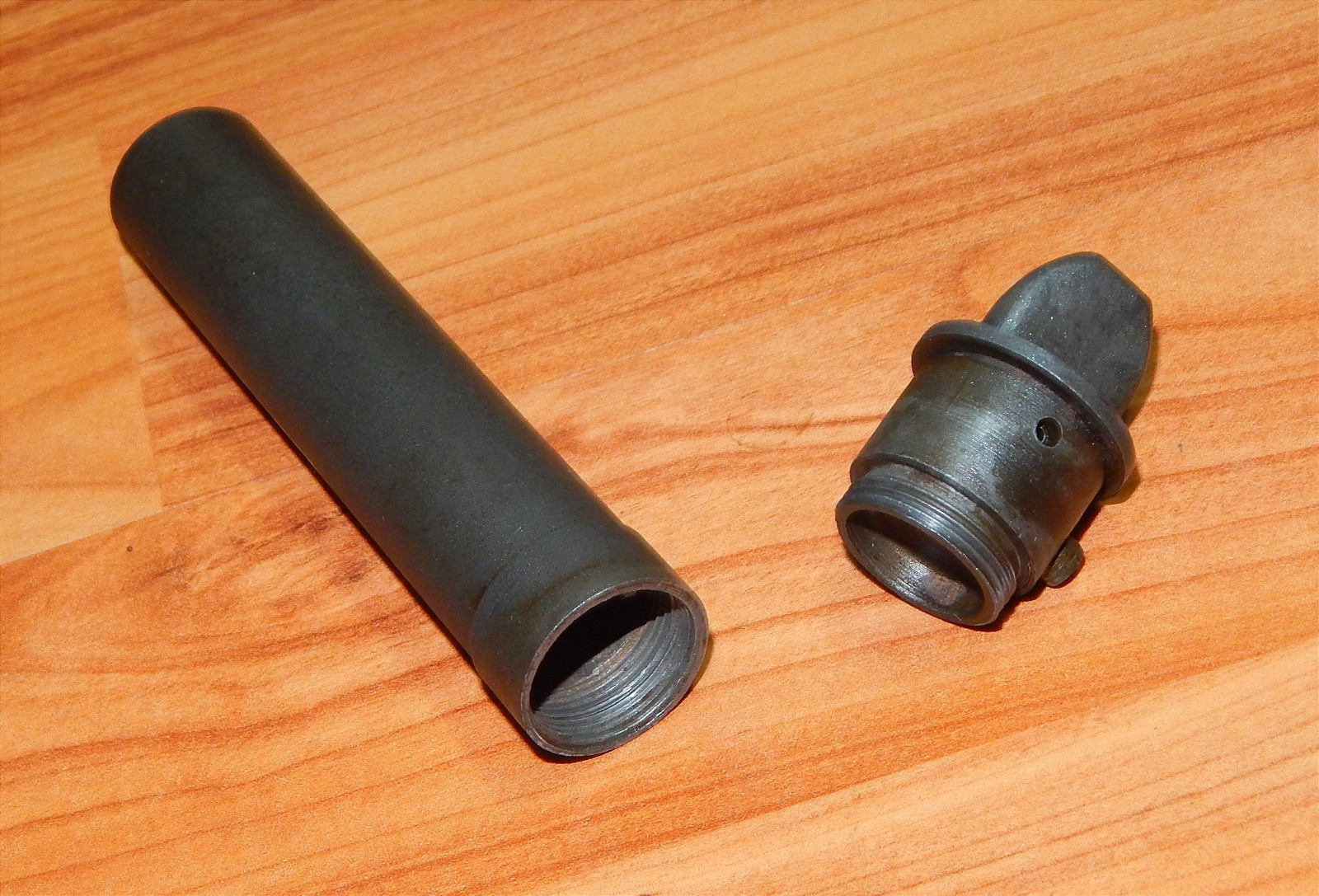 Die Aufnahme eines Bajonettes wird durch den Putzzeugbehälter ermöglicht, der unter dem Lauf montiert ist. Das Putzzeug selbst liegt nicht bei.