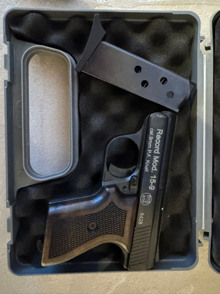 Die Taschenpistole 15-9 ist eine halbautomatische und besonders kleine Schreckschusswaffe zum Verschießen mit Platz- oder Gas-Munition. Die Record 15-9 zählt zu den längsten existierenden 180 Grad Patronenauswerfer Start- und Signalpistolen auf dem deutschen Markt. Die Record 15-9 Schreckschusspistole eignet sich hervorragend zum Führen in der Öffentlichkeit für den Selbstschutz zusammen mit einem kleinen Waffenschein und macht sie deshalb so beliebt.