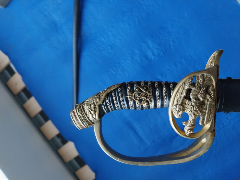 Biete einen IOD 89 an. Schönes Stück, durch die florale Zierung mal was netter anzuschauen,Messinggefäss,Klinge mit Rostspuren, Herstellerpunze, die Wicklung wurde wohl mal erneuert, die Scheide mal lackiert, ansonsten siehe bitte Bilder, Belegstück.
