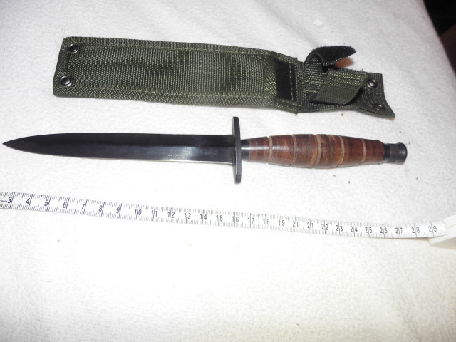 Löse einen Teil meiner Blankwaffensammlung auf. Biete hier ein Kampfmesser Sykes Fairbairne mit Nylonscheide an. Ob es sich hier um ein Original handelt, kann ich nicht sagen, da sich auf der Klinge keine Markierungen befinden. Zustsand siehe Bilder. Das Messer wird als "mit leichten Gebrauchsspuren eingestellt, da ich es schon länger in meinem Besitz habe und kein Händler bin. Vrerkauf nur an Personen ab 1 Jahren, daher Altersnachweis erforderlich. Der Versand erfolgt mit DHL versichert und nur innerhalb Deutschlands. Da es sich hier um einen Privatverkauf handelt, keine Garantie oder Rücknahme. Eine Abholung wäre möglich.