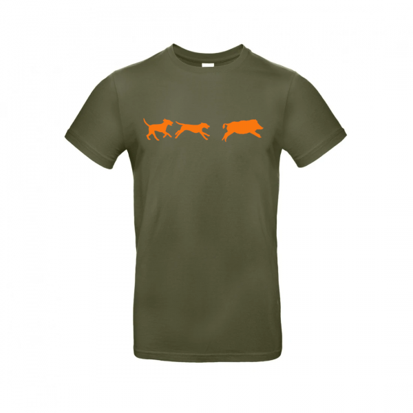 Kurzärmeliges, ausgestelltes T-Shirt in 150-Gramm-Qualität. Zeitgemäße Passform mit schmalem Kragen aus Rippstrick und Kragenband im Nacken. Der weiche aber strapazierfähige Stoff ist Einlaufvorbehandelt, damit Sie lange Freude an dem schönen T-Shirt haben.Der Druck wird von uns per Hand auf das T-Shirt aufgebracht.