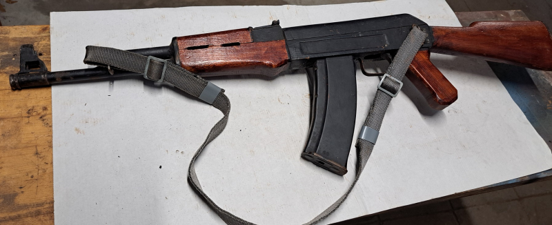 Aus Nachlass von meinem Großvater: NVA Exerziermodell einer AK47 Kalaschnikov. Der Korpus ist komplett aus Holz ohne jegliche Funktion. Beschläge und Kimme/Korn sind aus Metall. Trageriemen aus NVA typischem Webgurt. Zum Exerzieren als Deko.