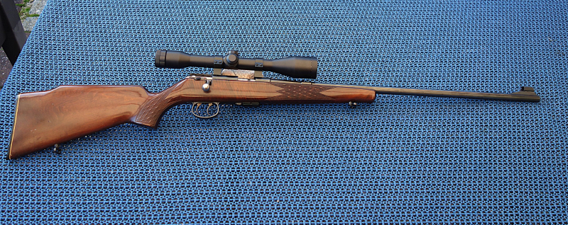 Mit 5 Schuss Magazin und einem Zielfernrohr Hubertus Superflex 4x40.