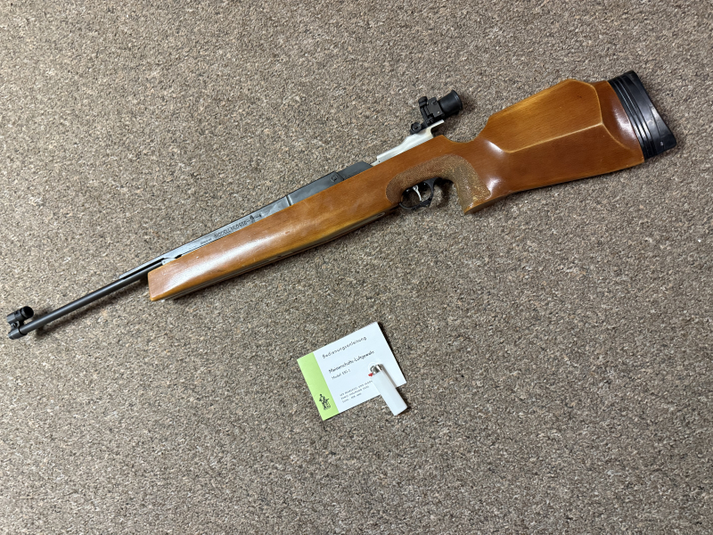Biete aus Sammlung dieses Haenel Modell MLG in 4,5 mm.Technisch in Ordnung,optisch mit altersgemäßen Gebrauchsspuren.Druck und Trefferbild sind sehr gut,Diopter lässt einfach und präzise einstellen.Schaft ohne Risse/ohne Brüche.Dazu die originale Bedienungsanleitung.
