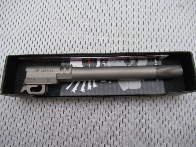 Zum Verkauf steht ein neuer langer 6"-Wechsellauf im Kaliber 7,65 Luger von IGB. Der Stainless-Lauf besitzt ein Zug-Feld-Profil und das Gewinde mit Nut zur Montage des originalen SIG-Kornhalters, bzw. eines Laufgewichts. Natürlich mit gültigem CIP-Beschuß! Der Lauf befindet sich in der Originalverpackung und stammt aus einer gewerblichen Auflösung. Für eventuelle Einpassungsarbeiten können wir hier keine Garantie übernehmen.