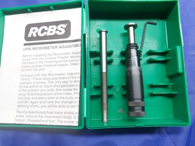 Das Angebot umfasst eine RCBS Uniflow Mikrometerschraube mit einer kleinen und einer großen Schraube. Diese Mikrometerschraube ist für die Verwendung mit RCBS Uniflow Pulverfüllgeräten konzipiert.