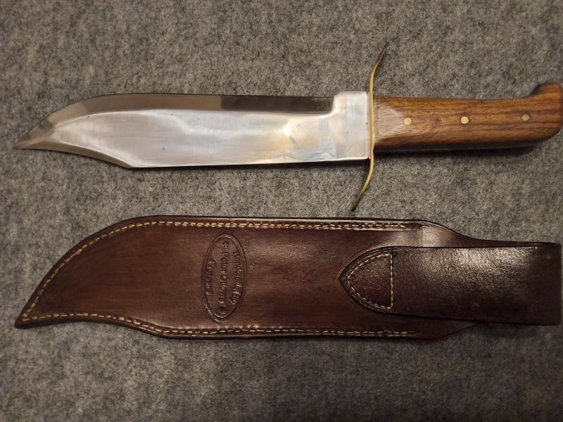 Hallo zusammen, hier verkaufe ich ein Bowie-Messer, Klingenlänge 25cm, Gesamtlänge 38cm. Handcrafted by Peter Ottowa Freising. Gespflegter Zustand, siehe Bilder. Gemäß neuem EU-Recht erfolgt dieser Privatverkauf unter Ausschluss jeglicher Gewährleistung, Garantie, Umtausch und Rücknahme. Bilder sind Bestandteil der Beschreibung und damit der Auktion. Abgabe nur mit Altersnachweis (18+).