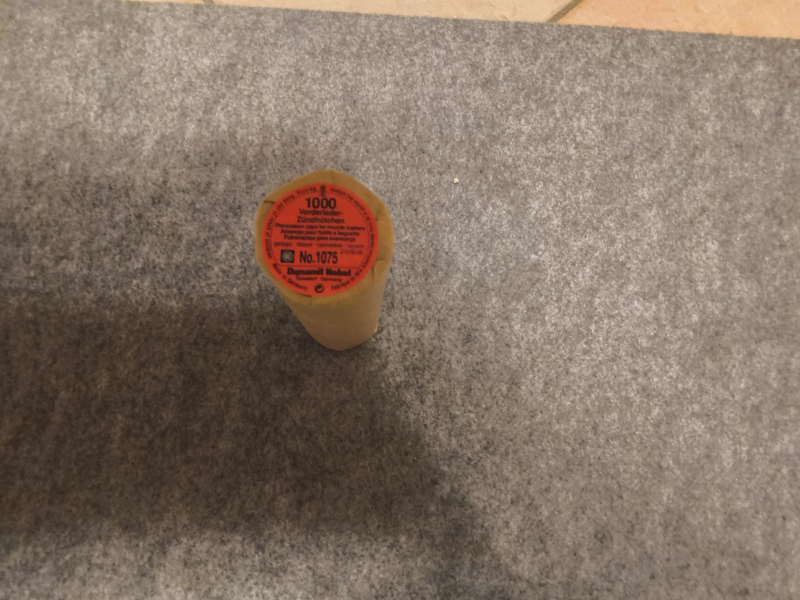 Hallo zusammen, verkaufe hier Dynamit Nobel Vorderlader Zündhütchen No 1075. Trocken gelagert, 1.000 Stück. Gemäß neuem EU-Recht erfolgt dieser Privatverkauf unter Ausschluss jeglicher Gewährleistung, Garantie, Umtausch und Rücknahme. Bilder sind Bestandteil der Beschreibung und damit der Auktion.