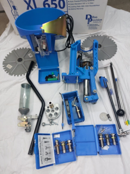 Versteigere meine Dillon 650 Presse. Die 650 ist komplett mit original Dillon Matrizensatz .357 Mag., Conversion Kit, Zünder Rohre Small und Large und der Hülsenzufuhr/Case Feeder mit LP Platte. Die Presse ist eingerichtet für das Cal. .357 Mag. Das Teil ist in einem kaum benutzten Zustand, siehe Fotos, die Teil der Artikelbeschreibung sind. Es müsste alles Zubehör vorhanden sein, was dazu gehört. Die Hülsenzufuhr/Case Feeder ist neu und wurde noch nie benutzt. Die Hülsenzuführplatte in LP, ist aber gebraucht.
