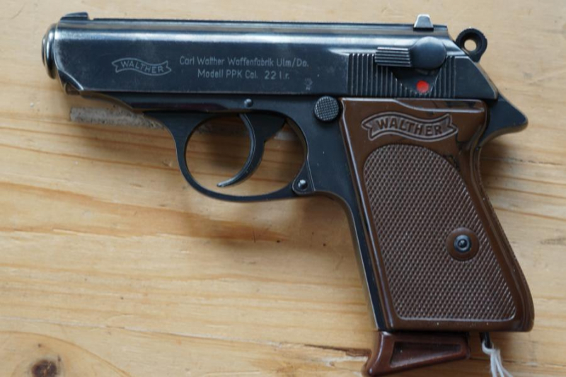 Walther PPK Kaliber .22 l.r., gültiger deutscher Beschuß von 1969, Lauf blank, Brünierung mit Kantenabrieb, mit Holster.