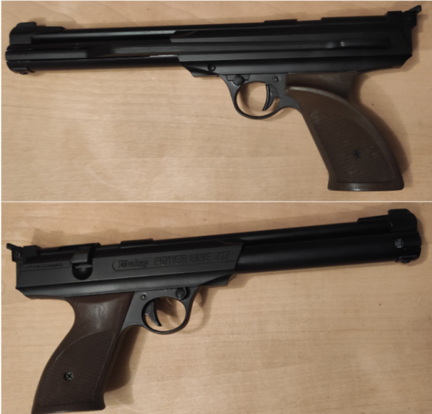 Es handelt sich um eine gebrauchte Luftpistole von einem Schützenkollen. Pistole war Jahrelang in einem Schrank eingewickelt im Tuch. Zustand siehe Fotos. Meiner Meinung nach geringe Nutzungsspuren und wenige bis keine Kratzer. Siehe Fotos. Artikel wird als gebraucht verkauft. Ich habe hinten am Minirepetierverschluss durchrepetiert. Im Anschluss habe ich den Seitenspanner gespannt. Der Luftdruck baut sich auf. Im Anschluss kann man abdrücken und der Schuss bricht. Ich denke die Energie liegt eher ein gutes Stück unter den 7,5 Joule. Zweimal getestet. Funktion ist da. Die Pistole ist für Rechtsschützen geschäftet. Die Pistole hat Kimme und Korn. Sicher eine Spaßige Pistole.