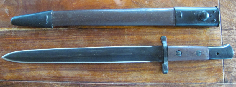 Enfield Ishapore Pattern 1903 Bajonett - Stempel X; I; Besitzstempel - Neufertigung, umlaufend professionell angeschliffen mit passender Lederscheide -- sehr gute Kopie des seltenen Originals - passt auf Enfield No. 1 Mk III und Ishapore L2A