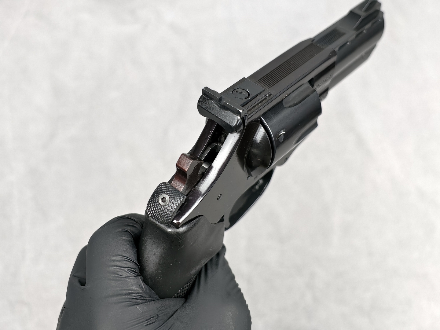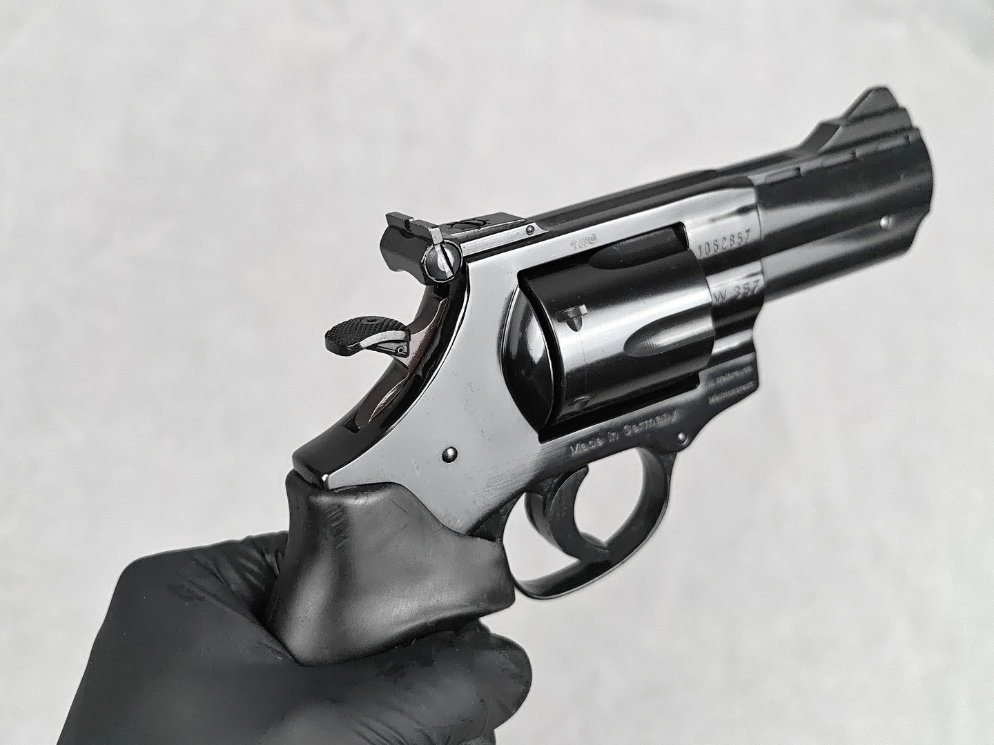 Das vorliegende Exemplar ist im hervorragenden Zustand mit minimalen Gebrauchsspuren, wie auf den Fotos zu sehen. Laut Vorbesitzer wurde die Waffe bisher nicht für jagdliche Zwecke eingesetzt; aus seinen Aufzeichnungen geht eine Schussbelastung von weniger als 200 Schuss hervor. Entsprechend einwandfrei sind das Laufprofil, der Schlossgang bzw. Trommeltransport sowie das Gesamterscheinungsbild.