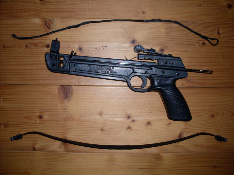 Die Armbrust ist in Teilen. Grundkörper teilweise in Kunststoff und Bogen in Metall. Abmessung ca. 44 x 32 x 13 cm. Privatverkauf keine Garantien, keine Haftungen und keine Rücknahmen etc.